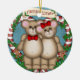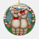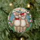Urso do casal do Natal que snuggling dentro de uma grinalda do doce-bastão. Enfeites de natal redondos