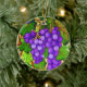 Ornamento em videira rica em detalhes com uvas roxas profundas e folhas verdes