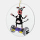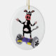 Ornamento De Cerâmica Vaca preto e branco engraçada em Hoverboard