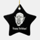Adicione um charme escuro ao seu decoro natalício com este Enfeites de natal cerâmico em forma de estrela, com um desenho de linha assombrosa de um vampiro a barrar as presas contra fundo preto, juntamente com as palavras "Feriados Felizes" na frente. No verso, o texto sinistro "Denn die Todten reiten schnell" (Para o viagem de morto fast) acrescenta uma "nod" aos filmes clássicos de terror e Dracula lore, fazer-o como uma peça perfeita para aqueles que apreciam a estética assustadora e gótico. Ideal como um presente de Natal único para a pessoa certa, este ornamento combina alegria de férias com uma borda sobrenatural arrepiante, perfeita para fãs do lado mais negro da temporada!