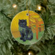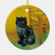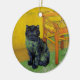 Ornamento com um gato preto no estilo de Van Gogh! Esta gatinho preta senta-se sobre um chão verde sobre um fundo de decoração da Noite Estrelada. Um presente fabuloso para amantes de gatos e colecionadores de arte holandeses!