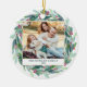 Feliz Feriados! Adicione um sotaque festivo à sua árvore de Natal com este ornamento personalizado. Apresenta um verde-aquarela e uma coroa vermelha. Personalize adicionando suas próprias fotos. Este ornamento personalizado de fotos também será perfeito como presente.