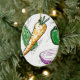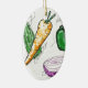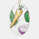 Um grupo de quatro vegetais em um teste padrão sem emenda que inclua uma cebola vermelha, uma pimenta verde, uma haste do aipo e uma cenoura.