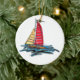 Ornamento De Cerâmica Veleiro vermelho & Dourado