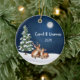 Celebrar a magia da estação com este ornamento lindamente personalizado, com dois veados se escondendo debaixo de uma árvore de Natal coberta de neve, iluminado pelo brilho suave de uma lua de cheio contra um céu azul escuro e rico. Esta cena alarmante, aliada aos primeiros nomes do casal e ao ano, faz dela uma perfeita guardiã para os casais celebrarem o seu amor durante as férias. A parte de trás do ornamento apresenta as luzes festivas de Natal e a mensagem "Feliz Natal com Amor", que também pode ser personalizada. Este ornamento é uma adição encantadora e significativa a qualquer decoração de férias, perfeita para dar ou comemorar juntos um ano especial.