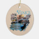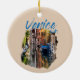 Uma imagem de suvenir de uma ponte, barcos e edifícios coloridos em torno de um canal em Veneza, Itália. Este design de souvenir faz parte da minha série Destino. Esse ornamento cerâmico é totalmente personalizável e pronto para ser personalizado.