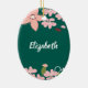 Ornamento De Cerâmica Verde com Flores Rosa Personalizadas