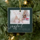 Ornamento De Cerâmica Verde de Natal de Script Joyful Fotográfico Modern