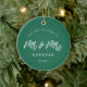 Ornamento De Cerâmica Verde Moderno Nosso Primeiro Natal como Sr. e Sra.