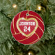Ornamento De Cerâmica Vermelho Escuro Elegante e Voleibol Dourado