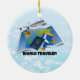 Viajante mundial — passaporte, mapa, bilhetes em um fundo de Enfeites de natal de nuvens.