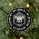 Escudo viking solteira vestindo pelo e capacete corado em fundo Nó Celta. Enfeites de natal do excelente para o ventilador viking History.