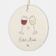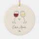 Feliz Natal para o casal feliz! Este ornamento apresenta um design com um copo de vinho tinto e um copo de vinho branco, perfeito para amantes de vinho. Um ornamento personalizado para um casal recém-casado ou noivo, um casal que comemora um aniversário ou qualquer casal que comemore um ano especial.