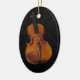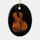 Este ornamento do feriado apresenta ainda uma vida clássica de um violino velho elegante. Este instrumento gracioso é essencialmente uma caixa de madeira oca com extremidades arredondadas, dois furos graciosos de f e um centro estreito. Os quatro grupos de cordas estendem de um suporte da corda na parte inferior do corpo sobre uma ponte aumentada à extremidade do pescoço estreito, ou do fingerboard onde as quatro cordas são introduzidas em um pegbox e guardaradas lá com Pegs. Os Pegs são usados para ajustar o violino. Quando o arco é tirado através das cordas no corpo do violino produz a música incrível, mágica! Os tons marrons, quase alaranjados dourados lindos são ajustados fora pelo tecido preto gracioso de veludo.