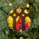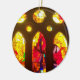 Um ornamento de suspensão frente e verso para trazer um toque de Antoni a Barcelona morna e maravilhoso de Gaudi a sua árvore de Natal. Cada mostras laterais uma janela de vitral brilhantemente iluminada, no azul alaranjado e legal impetuoso, do Sagrada Familia