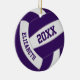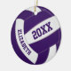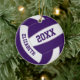 Essa equipe de vôlei colora ornamento para meninas ou meninos apresenta um vôlei de aparência realista com painéis roxos e brancos - personalizados com o nome do atleta e ano na frente e no verso do ornamento - por katz_d_zynes