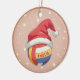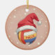 Ornamento De Cerâmica Volleyball Ball with Red Santa Hat Name Christmas