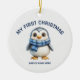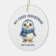 Ornamento De Cerâmica Watercolor Baby First Christmas Photo