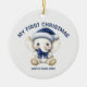 Ornamento De Cerâmica Watercolor Baby First Christmas Photo