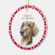 Este adorável ornamento de feriado apresenta uma bela ilustração aquática de um cão Dachshund cercado por uma coroa vermelha de pegadas e ossos. Adicione o nome do seu animal de estimação Doxie à frente e ao ano atrás. Você também pode personalizar a ocasião e mudá-la de Natal de rua para texto de sua própria escolha.