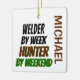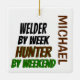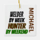 Este ornamento único, com a citação "Solder by Day Hunter by Weekend", é perfeito para qualquer soldador que adora caçar.