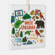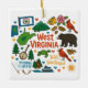 Commemorate your trip to the state of West Virginia with this modern keepsake Christmas ornament, featuring hand-drawn style illustrations of iconic food, animals, landmarks, landscapes, and culture. Personalize the back to mark your US adventure and create a memory you'll hang up on the tree for the Holidays year after year.