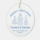 Featuring a whimsical festive design it’s a timeless memento that captures one of life’s most precious moments. Each elegant round ceramic ornament includes a gold hanging string and is available in six festive colors — Black, Green, Blue, Red, Pink, and Sage Green.