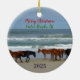 This beautiful 2025 Christmas ornament features the wild horses of Corolla in the Outer Banks, North Carolina. The font, color, and wording of the text can be changed or even deleted to fit your preference. Perfect for celebrating Christmas at your beach house or for anyone who loves the beach life!