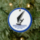 Windsurfer no ornamento cerâmico personalizado de conselho preto e azul para-brisas que exibe um ícone de pictograma minimalista de um surfista de silhueta preta e seu texto sobre fundo branco com borda azul. Personalize-o e altere o texto com monograma, nome ou mensagem. Esta design moderna e minimalista faz um presente perfeito para o surfista na sua vida.