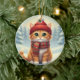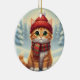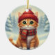 Ornamento De Cerâmica Winter Scarf Cat Christmas Cat with Plaid Scarf