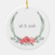 Se você gosta que suas férias tenham senso de humor, este ornamento é para você. Design apresenta aquela maravilhosa e mítica criatura florestal, o jaqualope, em aquarelas sutis e sutis, saltando em meio a uma coroa de louros de botânicos verdes e flores de férias. Personalize a frente com o ano e a parte traseira com nomes ou sua escolha de texto. Comprar itens correspondentes da nossa coleção Holiday Magic: