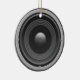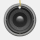 Renderização realista de um auto-falante estéreo (ou dois). Gráfico preto e branco, em t-shirts, capuzes, cartas, presentes.