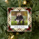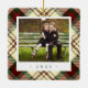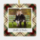 Um adorável ornamento fotográfico de dupla face exibindo uma foto favorita em cada lado, em um fundo festivo vermelho e xadrez verde. Personalize com uma legenda personalizada na frente em letra manuscrita e adicione o ano no verso.