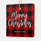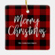 Ornamento De Cerâmica Xadrez de Buffalo Vermelho e Feliz Natal |Nome pes