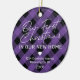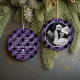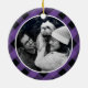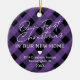 Nosso primeiro ornamento de natal com fundo de xadrez roxo, o ditado 'nosso primeiro natal' em uma elegante letra branca, seu novo endereço e o ano. Pelo contrário, é uma foto para você mudar para a sua, isso faz um presente perfeito para novos donos de casa!