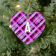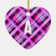 Uma decoração moderna de árvores de Natal em tons de rosa impressionantes. O ornamento enforcado apresenta um padrão de xadrez, e pode ser personalizado com o original do destinatário, criando um dom personalizado na moda. O reverso da decoração é uma simples rosa claro, com a saudação festiva Feliz Natal na tipografia elegante da escrita.