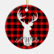 Silhueta de montagem de veados russos na xadrez de lenhador vermelho e preto. Personalizar com as iniciais e o ano indicado.