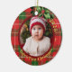 Ornamento De Cerâmica Xadrez Verde Vermelho | Foto de Natal do bebê