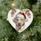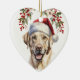 Na frente deste ornamento de Férias está a imagem de um lindo Cão Labrador Amarelo e Retriever. O cachorro veste um chapéu vermelho e branco de Papai Noel, e uma meia-coroa de morango sagrada e vermelha pendura sobre ele. No verso está uma repetição da coroa oca, e o texto vermelho que diz MERRY CHRISTMAS". Existem campos de texto adicionais para personalizar. Não se esqueça de ver outras imagens de cães do laboratório, bem como produtos, na Vila dos Cães.