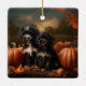 Ornamento De Cerâmica Yorkipoo Puppy Autumn Delight Pumpkin