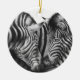 Reproduzida de forma encantadora a partir de uma ilustração original de caneta e tinta de duas zebras. Um bem-estar divertido ou ornamentos de árvores.
