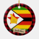 Ornamentos: ornamento decorativo russo do Zimbábue com bandeira do Zimbábue cercada por padrão de xadrez de búfalos vermelho e preto - ama meu país, decoração de Natal, patriotas nacionais/fãs esportivos