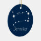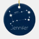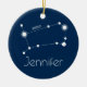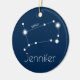 Ornamento de constelação Gemini Zodiac Personalizado. Apresentando a constelação de Gemini em um fundo de Marinho, este ornamento Gemini personalizado faz uma adição perfeita à sua árvore de Natal. Gemini é o Terceiro Sinal do Zodíaco e inclui todos os Nasceres de 21 de maio - 20 de junho. O símbolo de Gemini são os gêmeos. Os traços de personalidade do Gemini são intelectuais, inquisitivos, inteligentes, vivos e juvenis. O Birthstone de Gemini é o Planeta de Decisão Pearl e Gemini é Mercúrio. A cor e o texto de fundo podem ser personalizados