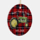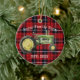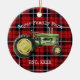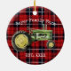 Comemore sua fazenda familiar com esses ornamentos personalizáveis que contêm um fundo de xadrez vermelha e trator de aquarela verde.