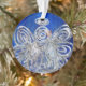 Um anjo branco e prateado repousa contra um céu azul índigo à noite. Uma estrela aparece à esquerda sob a palavra cintilante "brilho". A reluzência na pintura dá a este anjo a magia de um brilho brilhante. Esta é uma imagem de anjo excelente a ser usada nos feriados como Natal ou Ano Novo. Personalize com seu próprio texto e imagens usando a opção "Personalizar o texto". Faça presentes, encantos e outros ornamentos personalizados do anjo da guarda. As receitas suportam DonnaBellas Angels a 501(c)3 sem fins lucrativos.