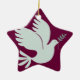 Paz Personalizada no Ornamento de Férias da Terra Este adorável ornamento de feriado tem a forma de uma estrela e apresenta uma simples ilustração de uma pomba de paz segurando um galho de azeitona no seu bico. A parte de trás deste Enfeites de natal temático da paz lê "Paz na Terra" e está pronta para personalizar com o ano de feriado atual, e uma mensagem da sua família. Este ornamento é excelente para doação de presente, como um gagueiro de estoque, ou como uma guarnição de férias que sua família vai tesourar em anos para vir quando você decorar sua árvore de Natal. Cada ornamento de feriado da Peace Dove está pronto para personalizar e enforcar. A frente também pode ser personalizada com seu próprio texto, e a cor de fundo pode ser alterada. Basta selecionar o botão "personalizar".