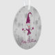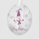 Decorem sua árvore neste feriado com um Ornamento de Férias Magenta Cute Snowman. Design de ornamento apresenta um bonitinho bonitinho de neve em um chapéu, cachecol e luvas adornadas com cinzas e flocos de neve brancos contra um fundo de nuvens de cinzas. Itens adicionais de presentes e feriados disponíveis com este design também.