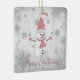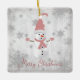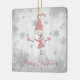 Decorre sua árvore nesta temporada de festas com um ornamento cerâmico de Festa de Neve Cuta rosa. Design de ornamento apresenta um bonitinho bonitinho de neve em um chapéu, cachecol e luvas adornadas com cinzas e flocos de neve brancos contra um fundo de nuvens de cinzas. Itens adicionais de presentes e feriados disponíveis com este design também.