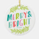 Belo personagem desenhado para fotos de Natal com um design de tipografia de chic que diz Feliz e Bright personalizados com o ano. Adicione a sua própria foto para criar a manutenção perfeita ou um presente personalizado para a sua família e amigos. Clique em Personalizar para editar fontes ou adicionar mais fotos para criar uma única design de ornamento de feriado. Um presente especial e único!