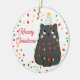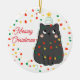 Enfeites de natal bonito com um gato embrulhado em luzes de Natal com a mensagem de feriado "Feliz Natal". Visite nosso compro para ver uma grande variedade de ornamentos de gatos